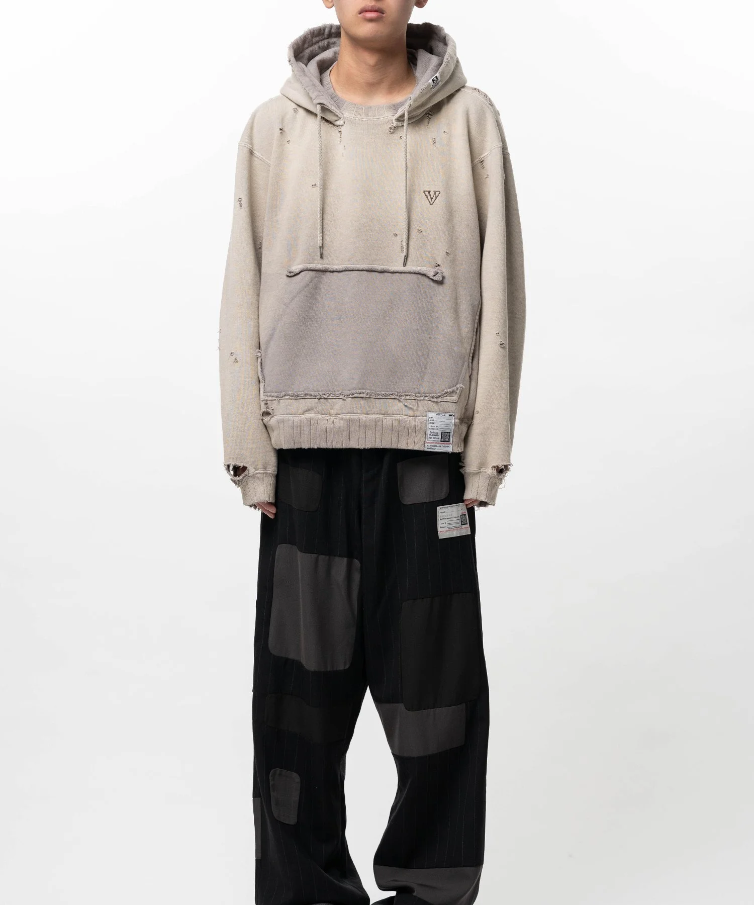 【2026 Spring /Summer Collection】 Sun Faded Like Hoodie Wide-back silhouette hoodie. Features bleach and distressing treatments for a sun-faded, aged fabric appearance. Detachable hood. Front pocket designed to appear torn and missing. Original brand logo embroidered on left chest. *The perforated damage visible throughout is part of the design. Wearing model : 185cm Wearing size : 46 ※Product images may appear different from the actual item due to lighting conditions during photography or variations in monitor settings. ※Some photos feature sample items; actual products may differ slightly in finish or sizing. ※Color, texture, and specifications may vary slightly due to differences in production timing or individual characteristics of each piece. We appreciate your understanding. ※Intentional distressing such as holes, fading, and staining is part of the design and reflects the character of the item. Please enjoy these features as part of its unique aesthetic. - Item No: J16HD721 - Brand: Maison MIHARA YASUHIRO - Category: MENS » TOPS » SWEATSHIRTS - Season: 2026 S/S - Material: Cotton100% - Made In: JAPAN