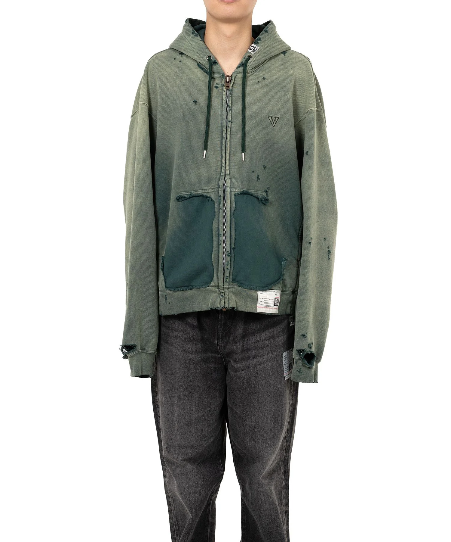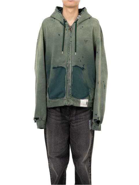 【2025 Autumn/Winter Collection】 Sun Faded Like Zip-up Hoodie Zip-up hoodie. Bleached and damaged fabric that looks as if it has been tanned over time. Designed with a torn off front pocket. Original brand mark embroidered on the left chest. *Hole damage seen throughout is part of the design. Wearing model : 182cm Wearing size : 48 ※Product images may appear different from the actual item due to lighting conditions during photography or variations in monitor settings. ※Some photos feature sample items; actual products may differ slightly in finish or sizing. ※Color, texture, and specifications may vary slightly due to differences in production timing or individual characteristics of each piece. We appreciate your understanding. ※Intentional distressing such as holes, fading, and staining is part of the design and reflects the character of the item. Please enjoy these features as part of its unique aesthetic. - Item No: A15PK551 - Brand: Maison MIHARA YASUHIRO - Category: MENS » TOPS » SWEATSHIRTS - Season: 2025 A/W - Material: COTTON 100% - Made In: JAPAN