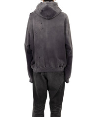 【2025 Autumn/Winter Collection】 Sun Faded Like Zip-up Hoodie Zip-up hoodie. Bleached and damaged fabric that looks as if it has been tanned over time. Designed with a torn off front pocket. Original brand mark embroidered on the left chest. *Hole damage seen throughout is part of the design. Wearing model : 182cm Wearing size : 48 ※Product images may appear different from the actual item due to lighting conditions during photography or variations in monitor settings. ※Some photos feature sample items; actual products may differ slightly in finish or sizing. ※Color, texture, and specifications may vary slightly due to differences in production timing or individual characteristics of each piece. We appreciate your understanding. ※Intentional distressing such as holes, fading, and staining is part of the design and reflects the character of the item. Please enjoy these features as part of its unique aesthetic. - Item No: A15PK551 - Brand: Maison MIHARA YASUHIRO - Category: MENS » TOPS » SWEATSHIRTS - Season: 2025 A/W - Material: COTTON 100% - Made In: JAPAN