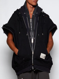 Details - Relaxed fit - Zip closure - Drawstring hood - Distressed design - Sleeveless - Triple layer construction - Care according to label - Material: 100% Cotton Size Information: Vendor Color Code: Brand Style: A14VT562 Designer/Brand: MAISON MIHARA YASUHIRO