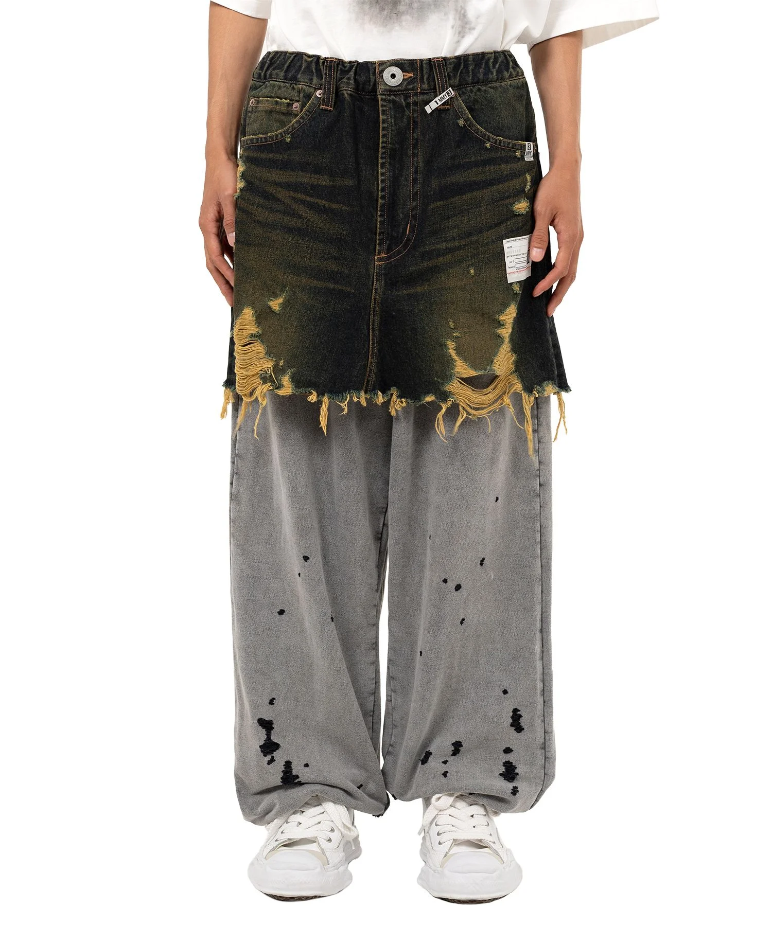 【2025 Autumn/Winter Collection】 Waist Layered Denim Pants Denim pants layered over sweatpants. Expresses a worn-in look. Side and back pockets. Wearing model : 185cm Wearing size : 46 ※Product images may appear different from the actual item due to lighting conditions during photography or variations in monitor settings. ※Some photos feature sample items; actual products may differ slightly in finish or sizing. ※Color, texture, and specifications may vary slightly due to differences in production timing or individual characteristics of each piece. We appreciate your understanding. - Item No: A15PT023 - Brand: Maison MIHARA YASUHIRO - Category: MENS » BOTTOM » PANTS - Season: 2025 A/W - Material: COTTON 100% - Made In: JAPAN