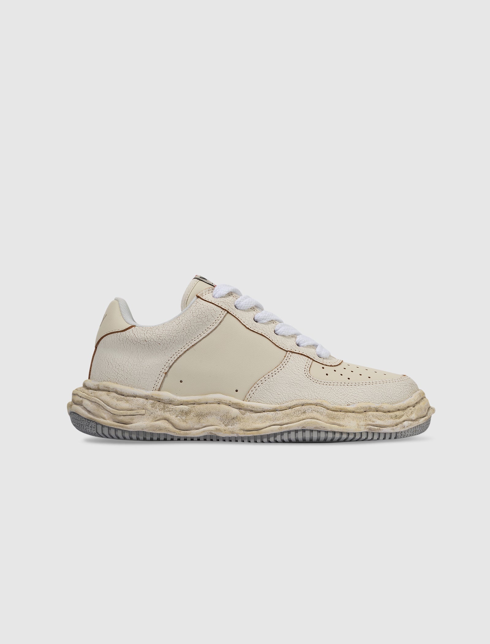 WAYNE LOW TOP CRACKING LEATHER SNEAKERS "WHITE"