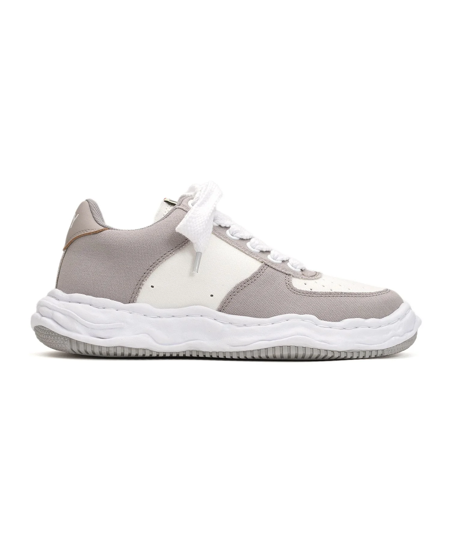 "WAYNE" Original Sole Canvas Low-top Sneaker The sneaker uses original sole created by the designer MIHARA modeled by hand using clay. "WAYNE" model. Canvas upper. "MMY" design on upper and counter. Two tone design. * Please note that the notations for 'JP' and 'US' are shown for reference purposes only. ※Product images may appear different from the actual item due to lighting conditions during photography or variations in monitor settings. ※Some photos feature sample items; actual products may differ slightly in finish or sizing. ※Color, texture, and specifications may vary slightly due to differences in production timing or individual characteristics of each piece. We appreciate your understanding. - Item No: A10FW720 - Brand: Maison MIHARA YASUHIRO - Category: MENS » SHOES » SNEAKERS - Material: UPPER : COTTON SOLE : RUBBER - Made In: CHINA