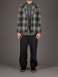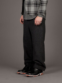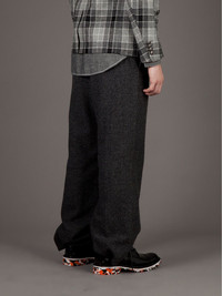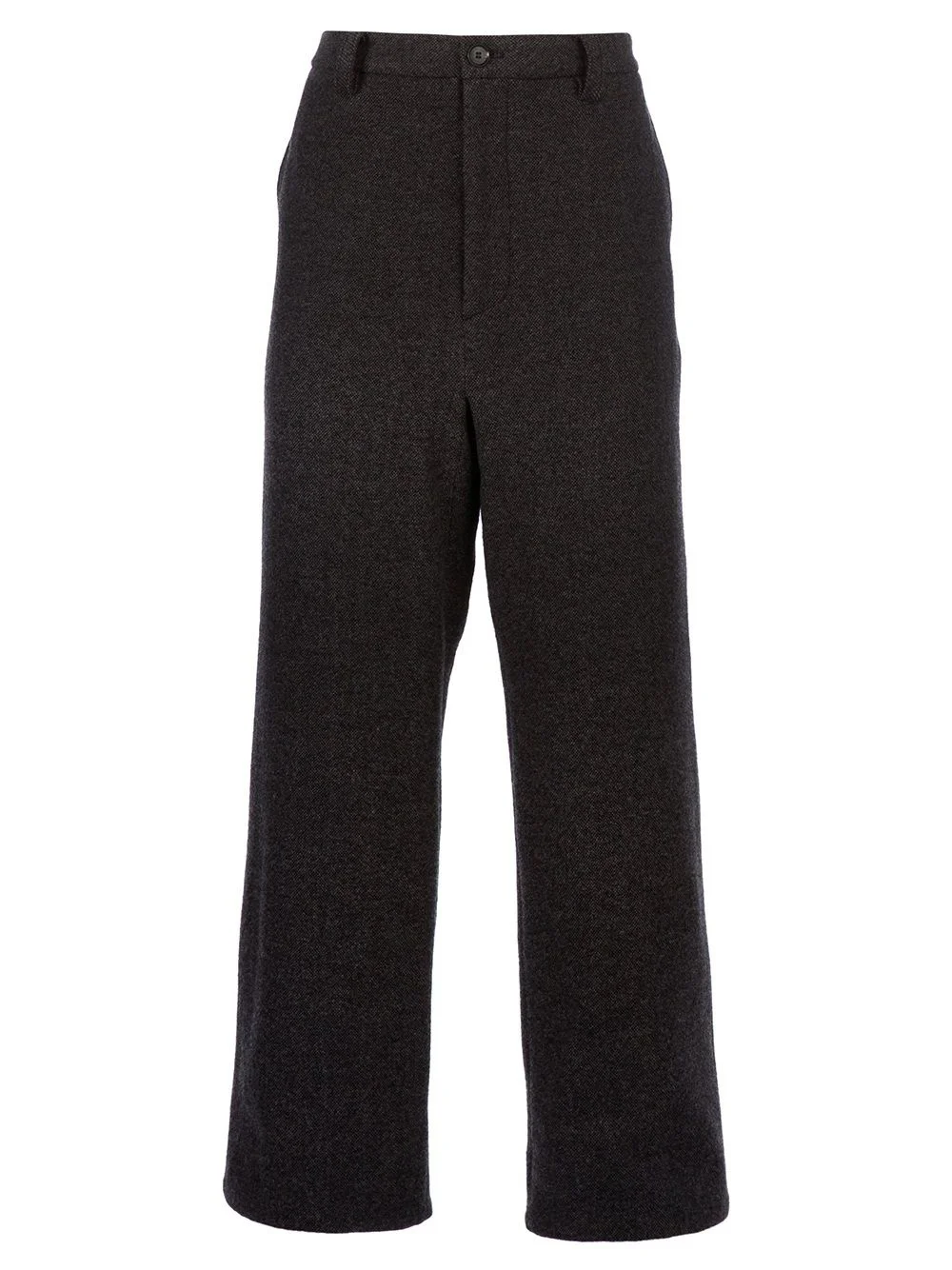 Wide leg trouser Grey wool blend trousers from Mihara Yasuhiro featuring a wide fit, button fastening and belt loops. Imported Composition Lining: Cupro 100% Wool 100% Washing instructions Dry Clean Only