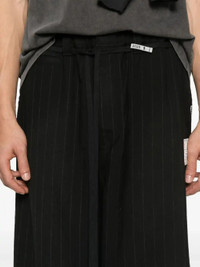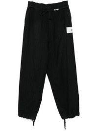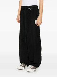 black concealed front fastening elasticated waistband detachable waist belt two side inset pockets Size & Fit Model Measurements: Height: 1.87 m Bust/Chest: 93.0 cm Hips: 90.0 cm Waist: 75.0 cm Model wears size 48 Fabric and Care Designer Style ID: A14PT032 Designer Colour: BLACK Composition: Cotton 100%, Wool 100% Washing instructions: Dry Clean Only