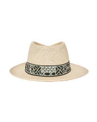 Malbon's Guarapo Straw Hat delivers classic sun protection with natural straw construction and a wide brim. Featuring a printed ribbon adorned with sugarcane stalk motifs inspired by the Antillean landscape, this tan hat combines timeless style with functional design. The M script logo sits prominently on the front. Material: toquilla straw Circumference measurements: M 22.4" / L 23.2" / XL 24"