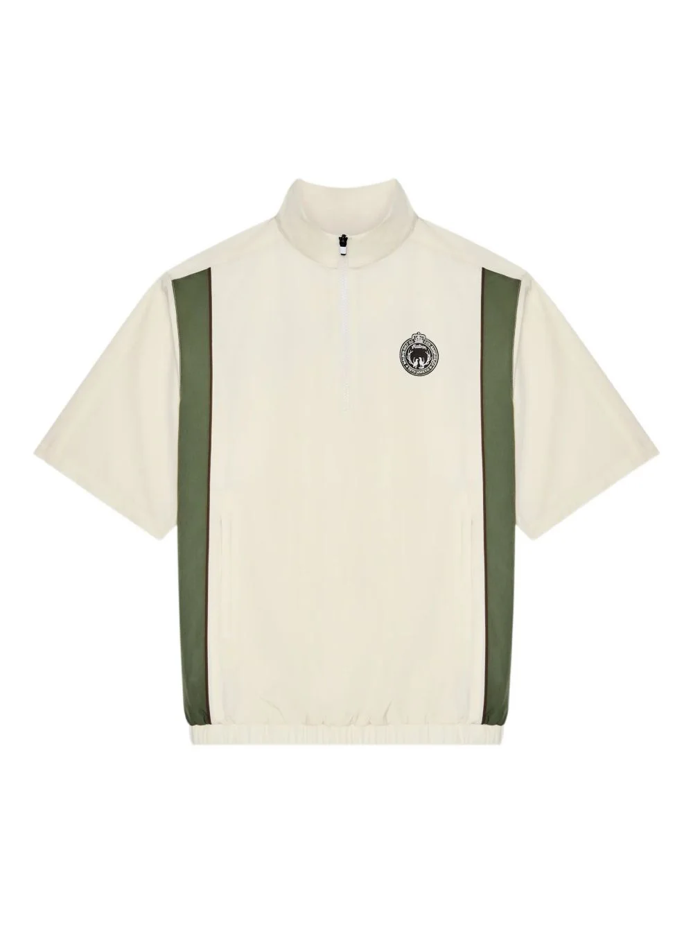 striped windshirt Highlights - Beige - Half front zip fastening - Short sleeves Imported Composition Nylon 88%, Elastane 12% Washing instructions Read Manufacturer Guidelines