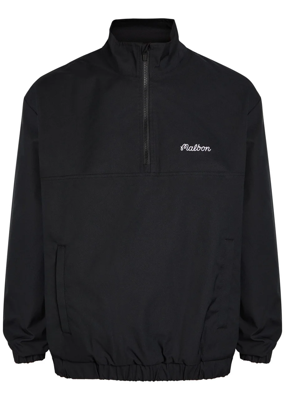 Info & Care Malbon twill jacket Funnel-neck, dropped shoulders, elasticated cuffs, logo embroidery at chest, zip-fastening front pockets, designer plaque at back, inverted pleat at back, elasticated hem, internal patch pocket Slips on 100% polyester Machine wash Size & Fit Length shoulder to hem: 27 inches/ 68.5cm Midweight Relaxed fit Model is 6'1"/ 185cm, chest size 38 inches and wears a size medium