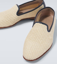 Manolo Blahnik's footwear is as timeless as it is versatile, as demonstrated by the Mario loafers. They're woven into a raffia effect to a clean, streamlined silhouette and accented with contrasting leather trims. Product Details - Upper: fabric - Lining: leather - Sole: leather insole and sole - Toe shape: almond toe - Made in Italy - Includes: shoe box, dust bags - Designer color name: 3704 Lkha/4108 Navy - Item color: beige, blue - Trim: leather - Item number: P01018012 Size & Fit - Fits slightly large to size - we recommend trying a half size smaller - UK sizes
