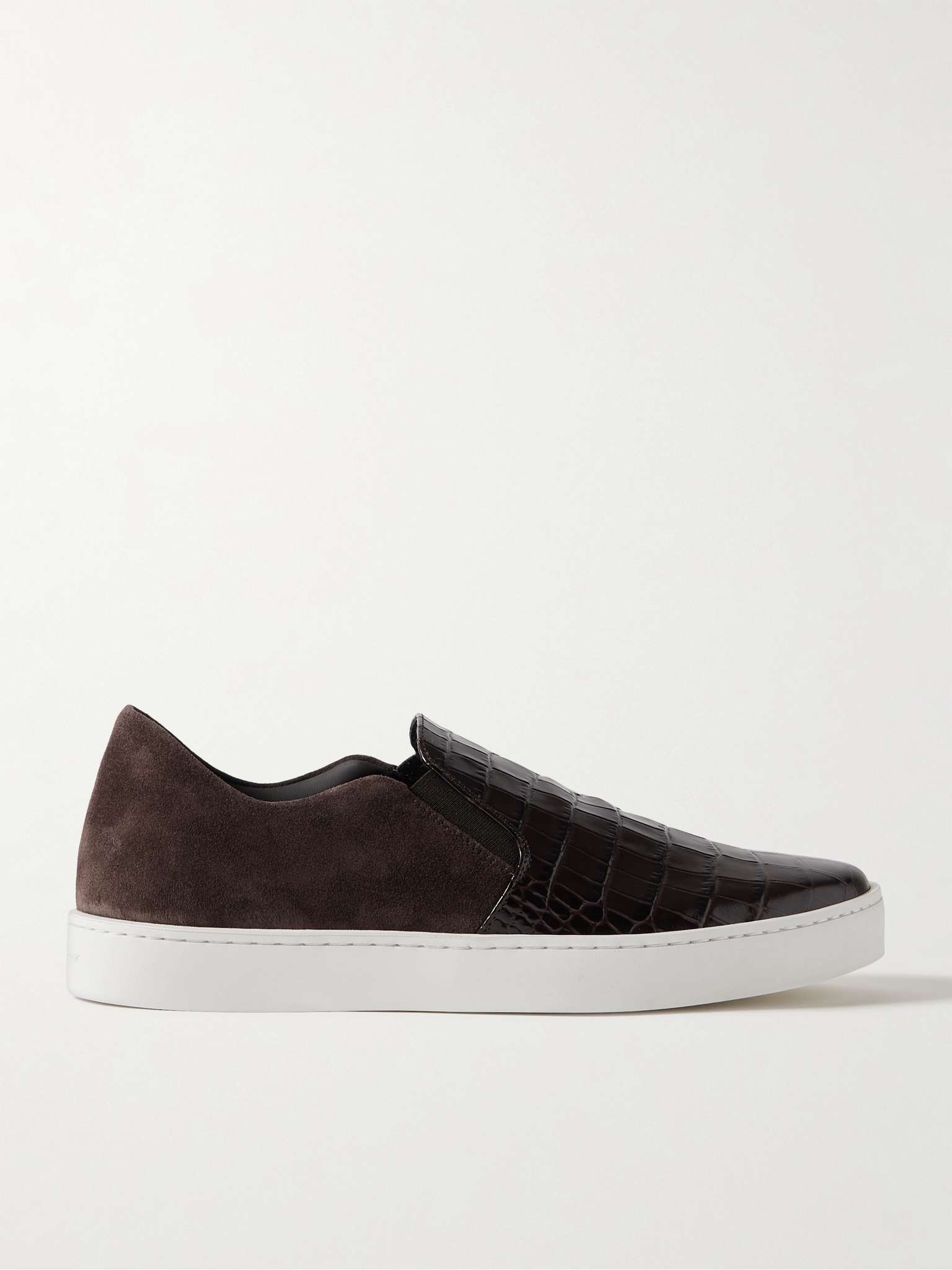 Nadores Suede and Croc-Effect Leather Slip-On Sneakers