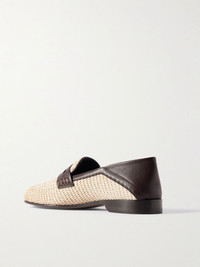 Padstow Collapsible-Heel Leather-Trimmed Raffia Loafers Beige
