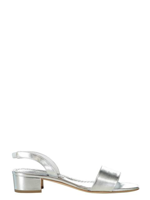DETAILS AND INSIGHT Manolo Blahnik patopia slingback sandal in gold. Leather Heel Height: 38mm Made in Italy Style 423-1775-0001-7103