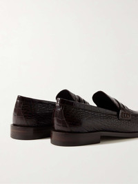 It doesn't get much more classic that Manolo Blahnik's penny loafers. This style has been handmade in Italy from croc-effect leather and works with everything from jeans to tailoring. Size & Fit - Fits true to size. Take your normal size - UK sizing Details & Care - Dark-brown croc-effect leather (Calf)