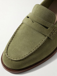 It doesn't get much more classic than Manolo Blahnik's penny loafers. This pair has been handmade in Italy from soft suede and set on leather soles. Wear yours with everything from jeans to tailoring. Size & Fit - Fits true to size, take your normal size - UK sizing Details & Care - Army-green suede (Calf)