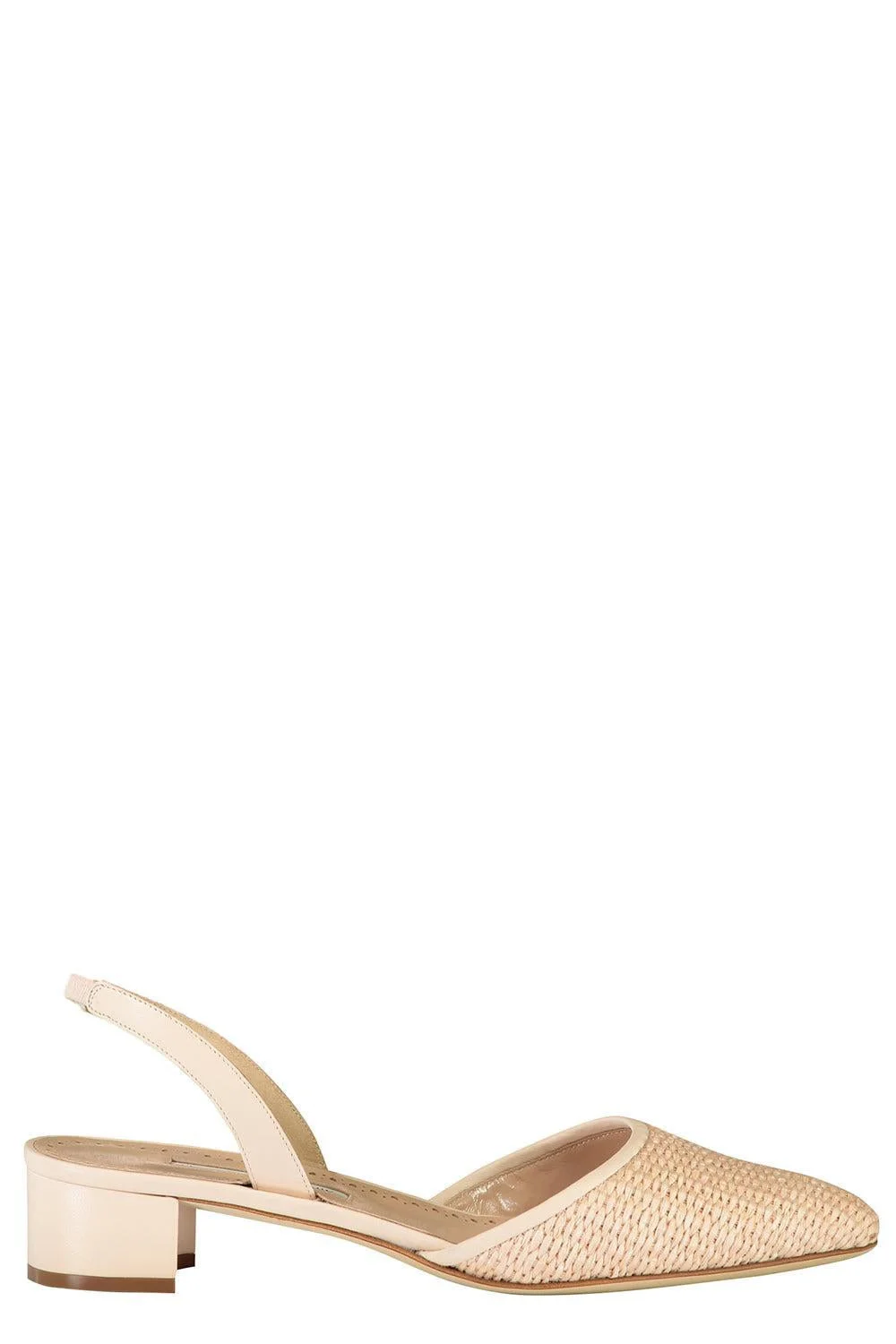 DETAILS AND INSIGHT Manolo Blahnik raffro samba tondo 030 sandal in nude. Heel Height: 30Mm Raffia Made In Italy Style 220-0463-0014-2714/2715