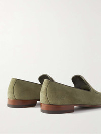 Manolo Blahnik's 'Truro' loafers come in an earthy green shade inspired by the work of Italian painter Giorgio De Chirico. Minimal and smart, they've been made in Italy from supple suede, trimmed with leather and stitched with classic apron-toe detailing. Size & Fit - Fits true to size. Take your normal size - UK sizing Details & Care - Tonal-green suede and leather (Calf)