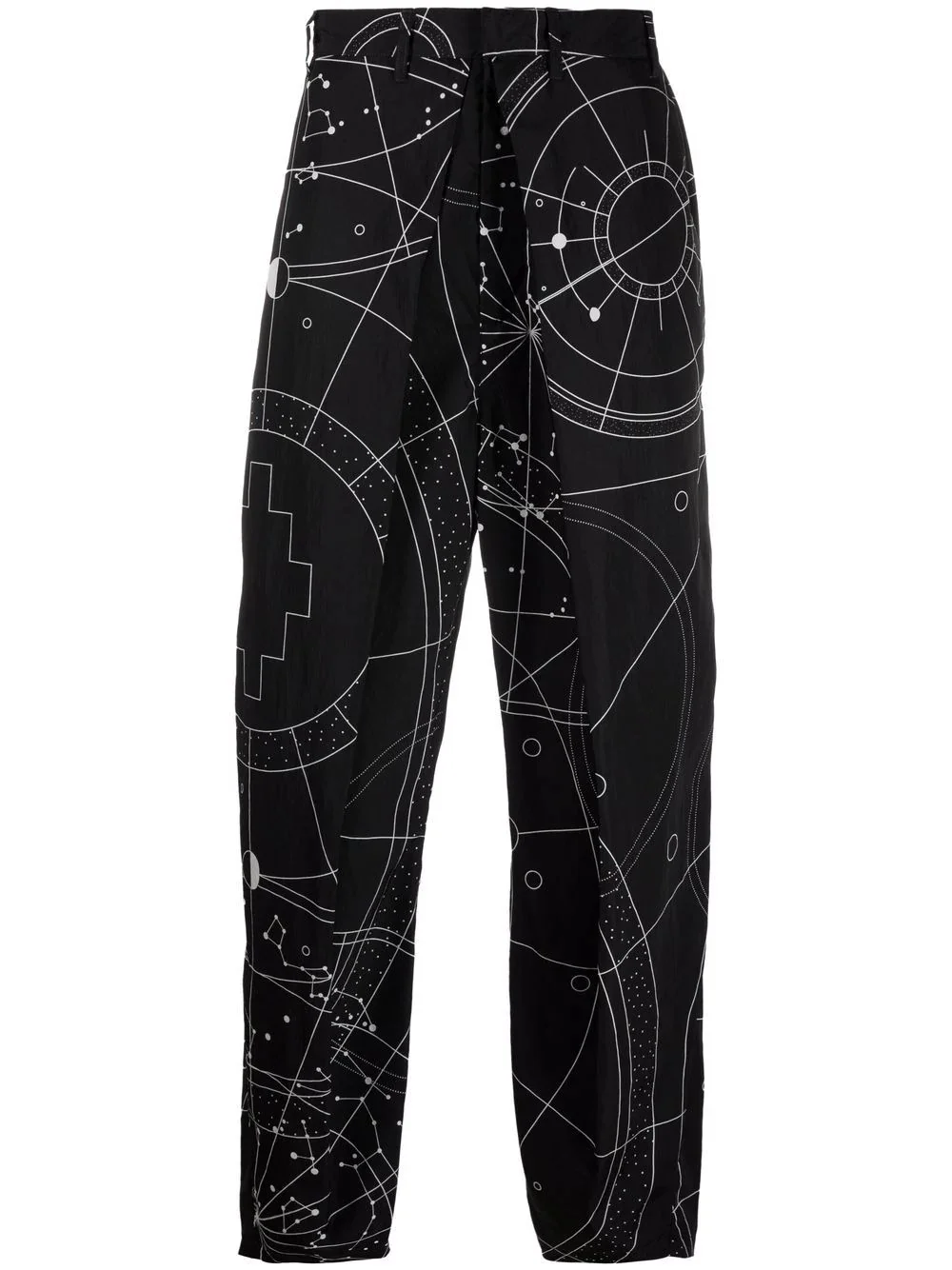 all over Astral pleated chinos The Astral graphic appears throughout Marcelo Burlon County of Milan's Autumn-Winter 2021 collection. This striking design can be seen covering this pair of pleated chinos that have a straight-leg silhouette. A high-waisted silhouette adds a tailored edge to this look. Made in Italy Composition Lining: Polyester 65%, Cotton 35% Outer: Polyamide 100% SIZE & FIT Model measurements Height 6 ft 2 in(1.89 m) Bust/Chest 35.43 in(90 cm) Hips 36.61 in(93 cm) Waist 28.74 in(73 cm) Washing instructions Hand Wash