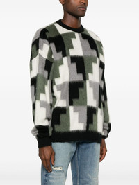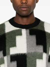 Aop Damier sweater Highlights - Green/multicolour - Patterned intarsia knit - Brushed effect - Contrasting ribbed trim - Crew neck - Drop shoulder - Long sleeves - Straight hem Made in Italy Composition Acrylic 38%, Polyamide 32%, Mohair 30% SIZE & FIT Model measurements Height 6 ft 2 in(1.88 m) Bust/Chest 36.61 in(93 cm) Hips 35.82 in(91 cm) Waist 27.95 in(71 cm) FittingInformation Designed to be unstructured, offering a loose fit throughout Made with a midweight knit, this piece offers some stretch
