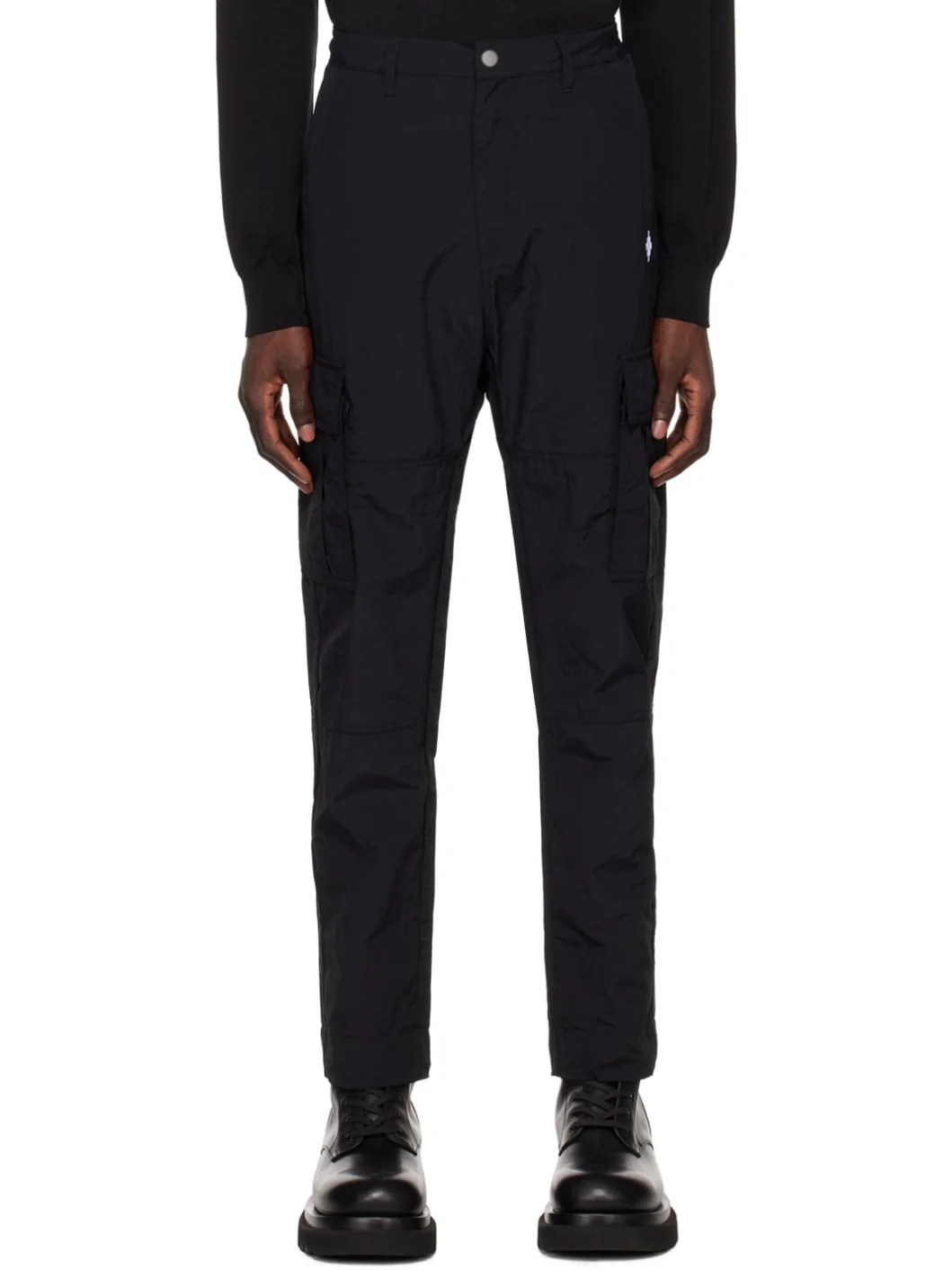 Slim-fit nylon faille cargo pants. · Concealed drawstring and belt loops at waistband · Four-pocket styling · Zip-fly · Logo embroidered at leg · Drawstring at cuffs · Patch pocket at outseams Supplier color: Black/White 100% polyamide. Made in Portugal 231539M188000
