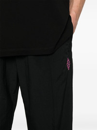 Cross-motif track pants Highlights - Black - Recycled polyamide - Elasticated drawstring waistband - Two side slit pockets - Signature cross motif - Raised seam detail - Elasticated ankles Imported Composition Recycled Polyamide 100%, Polyester 100% SIZE & FIT Model measurements Height 6 ft 2 in(1.87 m) Bust/Chest 37.79 in(96 cm) Hips 37.79 in(96 cm) Waist 30.31 in(77 cm) FittingInformation Designed for a relaxed tapered leg, allowing a comfortable loose fit above the knee with a closer fit towards the calves Adjust this piece’s waistband to your preference using the drawstring Made from a lightweight non-stretch fabric This piece fits true to size – take your usual size Washing instructions Machine Wash