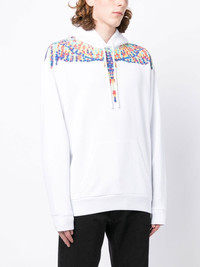 cotton drawstring hoodie white/multicolour cotton multicolour print drawstring hood long sleeves straight hem front pouch pocket Imported Composition Cotton 100% SIZE & FIT Model measurements Height 6 ft 2 in(1.87 m) Bust/Chest 36.22 in(92 cm) Hips 37.79 in(96 cm) Waist 28.34 in(72 cm) FittingInformation This piece fits true to size. We recommend you get your regular size Cut for an oversized fit Made with a mid-weight fabric Washing instructions Machine Wash