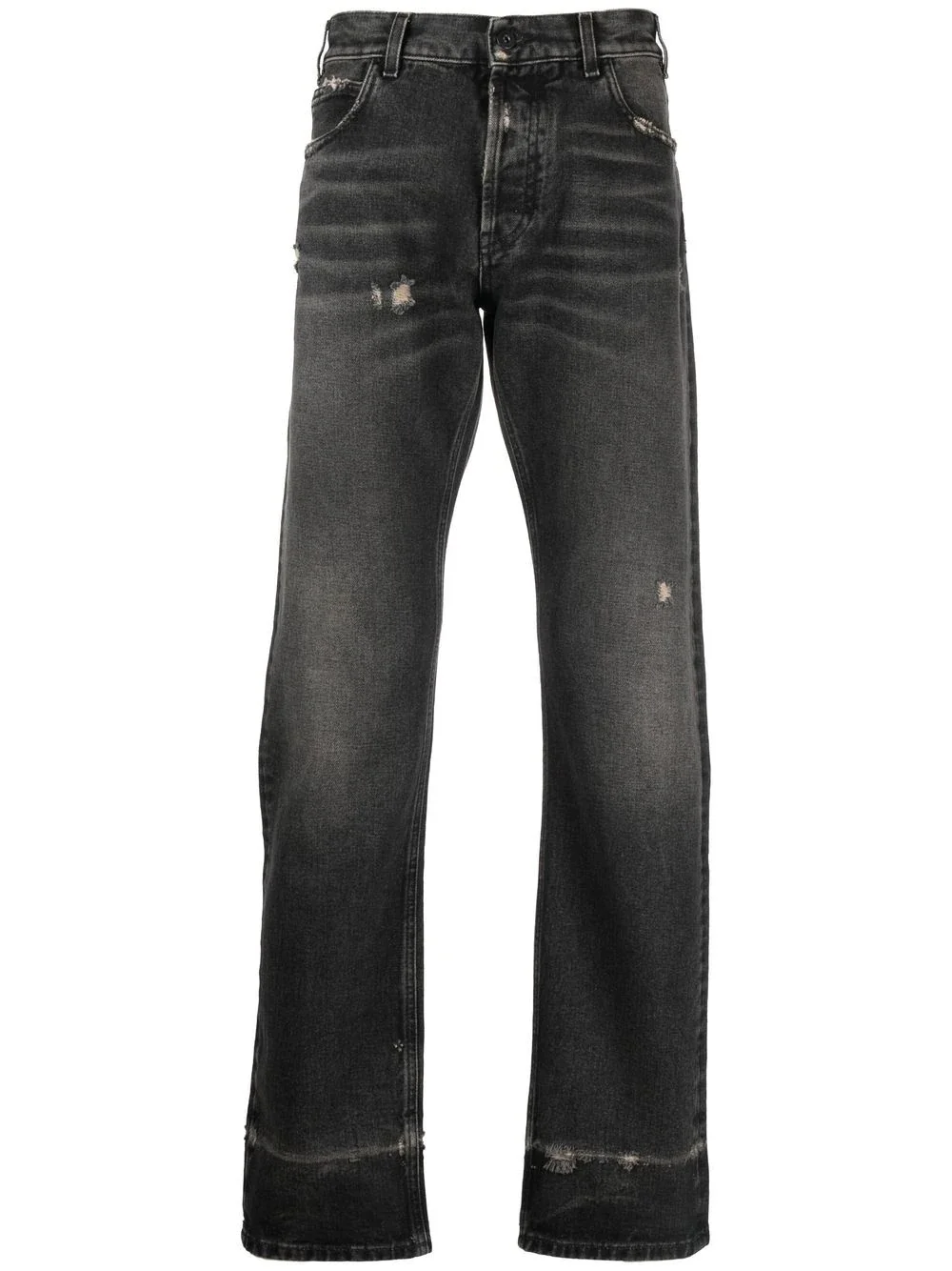 Cross distressed denim jeans These straight-leg denim jeans from Marcelo Burlon County of Milan emphasise the brand's rebellious design approach. Raw-cut trims and rips throughout give the pair a grunge appeal. Made in Italy Composition Lining: Polyester 65%, Cotton 35% Outer: Cotton 100%, Polyester 100% SIZE & FIT Model measurements Height 6 ft 1 in(1.86 m) Bust/Chest 37.4 in(95 cm) Hips 34.64 in(88 cm) Waist 29.13 in(74 cm) FittingInformation This piece fits true to size. We recommend you get your regular size Cut for a slim fit Made with a mid-weight non-stretch fabric Washing instructions Machine Wash