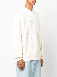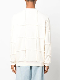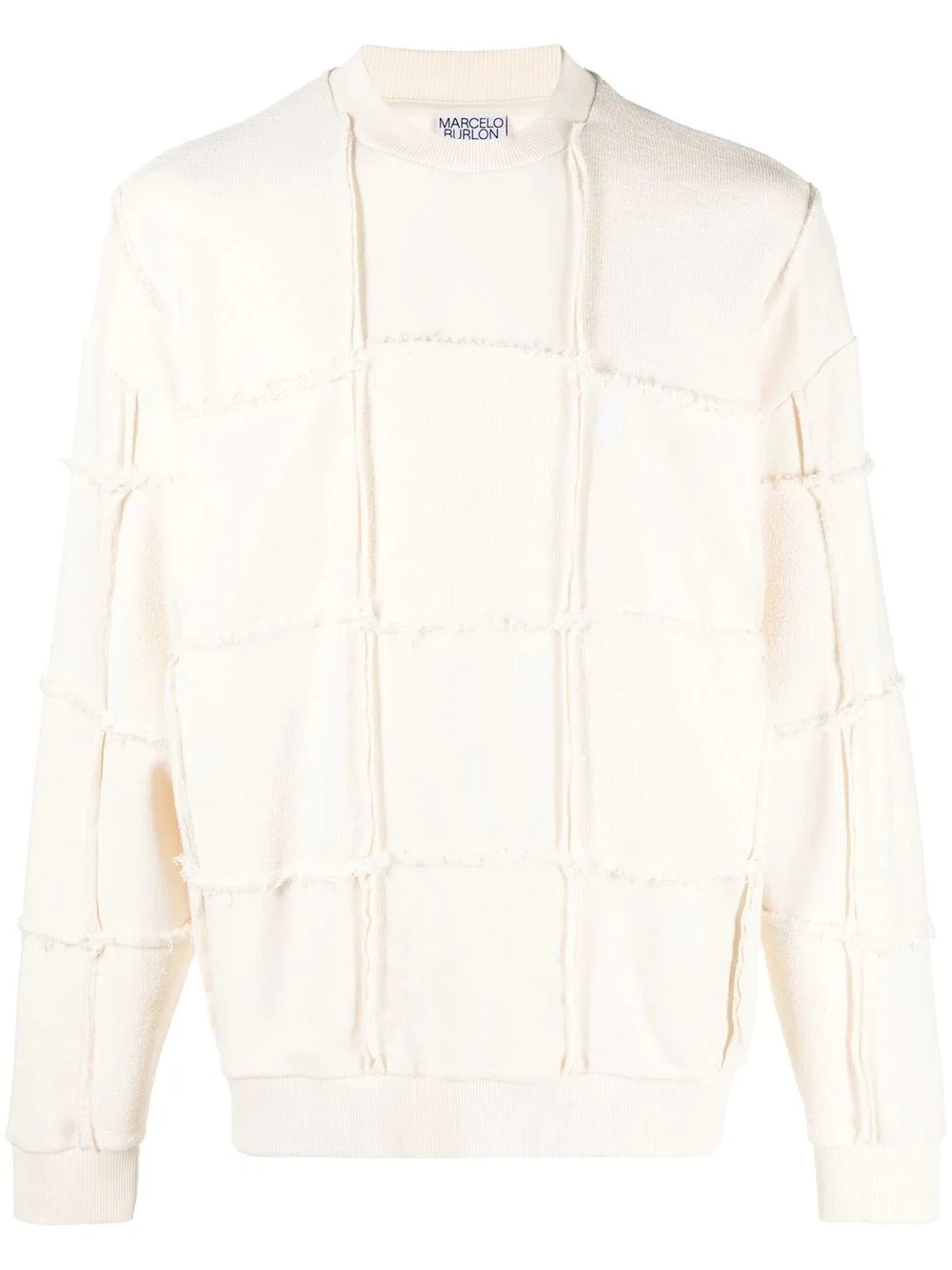 seam-detailing crew neck jumper Marcelo Burlon County of Milan displays a deconstructed take on the casual sweatshirt with this tonal ecru top. Cut from cotton, it is adorned with a grid of inside-out seam detailing for a textured finish. Imported Composition Cotton 100%, Polyester 100% SIZE & FIT Model measurements Height 6 ft 2 in(1.87 m) Bust/Chest 38.18 in(97 cm) Hips 36.61 in(93 cm) Waist 29.13 in(74 cm) FittingInformation This piece fits true to size. We recommend you get your regular size Cut for a loose fit Made with a mid-weight fabric Washing instructions Machine Wash