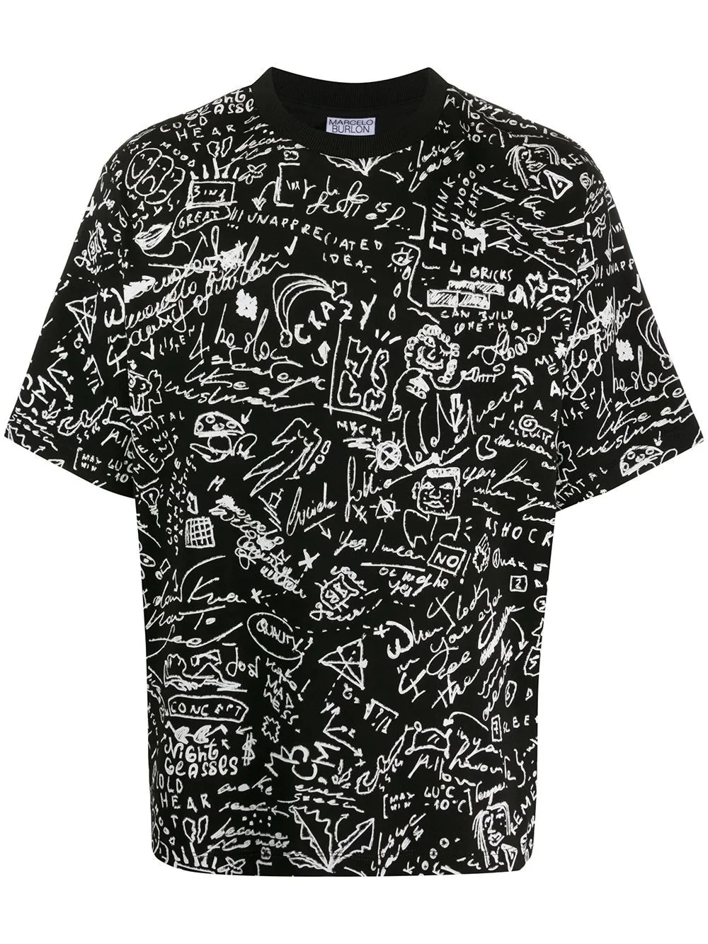 doodle print T-shirt Unleash your inner artist. Not saying you need paint and brushes, but this doodle-print T-shirt from Marcelo Burlon County of Milan will have you ready to explore your creative side. It's a work of art. Highlights - Black cotton doodle print t-shirt from marcelo burlon county of milan featuring round neck, short sleeves and graphic print. Imported Composition Cotton 100%