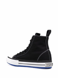 embroidered cross high vulcanized sneakers Marcelo Burlon County of Milan's high vulcanized sneakers is unmistakeably a creation from the Italian brand which features both a white embroidered cross motif towards the side and a boldly branded heel counter. Imported Composition Outer: Cotton 100% Lining: Cotton 100% Sole: Rubber 100%