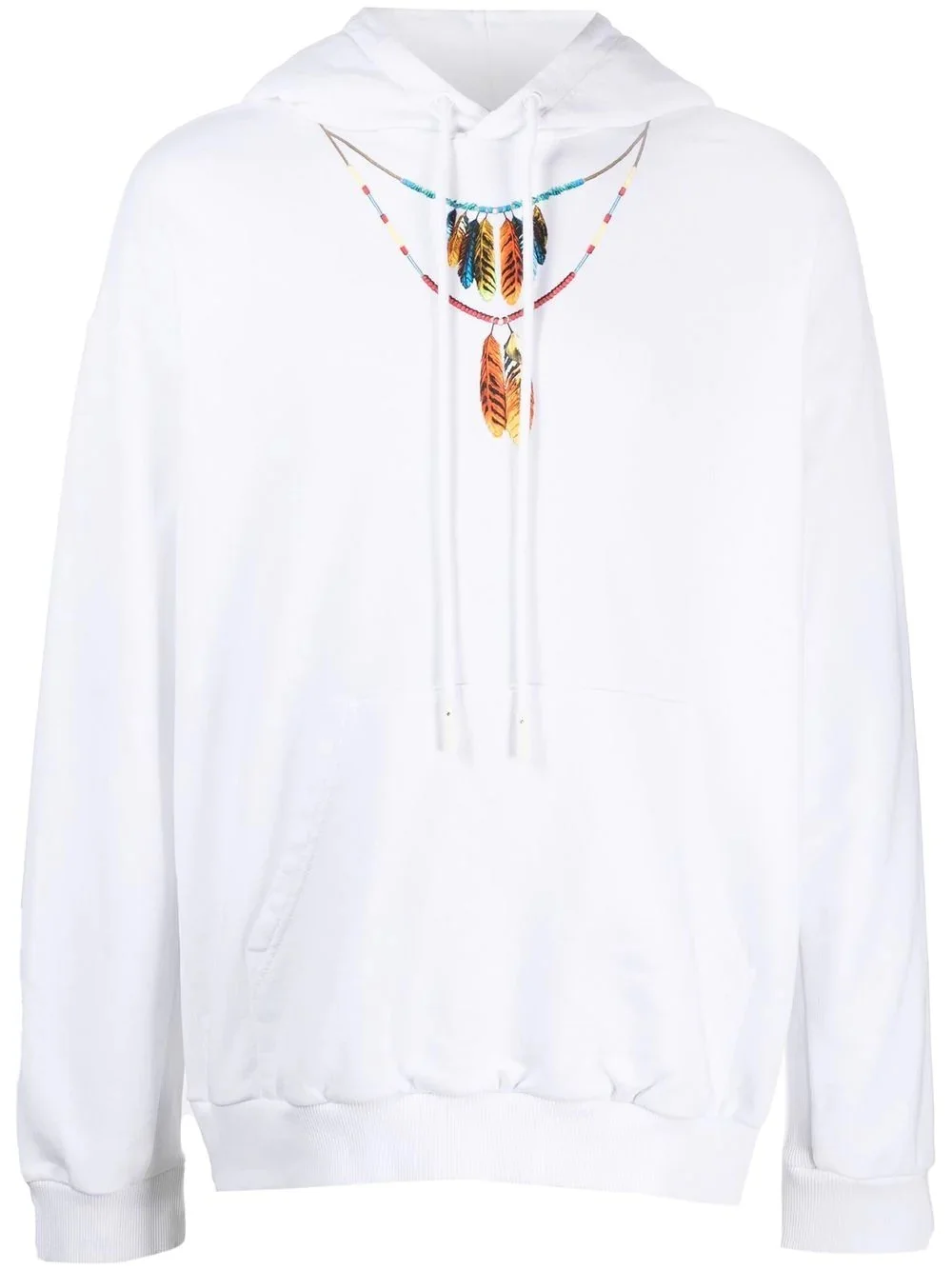Feathers Necklace cotton hoodie Marcelo Burlon County of Milan's feather motif is an instantly recognisable trademark of the brand that reflects their artful creativity. The iconic motif is seen at the neckline of this white cotton hoodie, offering a pop of colour to the piece. Imported Composition Cotton 100%, Polyester 100% SIZE & FIT Model measurements Height 6 ft 1 in(1.86 m) Bust/Chest 37.4 in(95 cm) Hips 34.64 in(88 cm) Waist 29.13 in(74 cm) Washing instructions Machine Wash