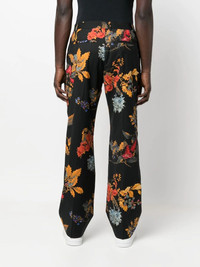 floral-print virgin wool trousers black/multicolour virgin wool all-over floral print mid-rise belt loops two rear welt pockets straight leg Made in Italy Composition Lining: Polyester 100%, Cotton 51%, Viscose 49% Outer: Virgin Wool 100% SIZE & FIT Model measurements Height 6 ft 0 in(1.84 m) Bust/Chest 35.82 in(91 cm) Hips 37 in(94 cm) Waist 28.34 in(72 cm) FittingInformation This piece fits true to size. We recommend you get your regular size Regular fit Made with a lightweight non-stretch fabric Washing instructions Dry Clean Only