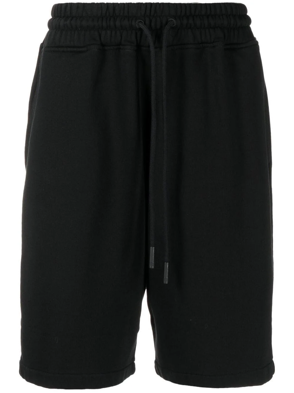 knee-length track shorts black cotton elasticated drawstring waistband two side slit pockets rear welt pocket knee-length Imported Composition Cotton 100% SIZE & FIT Model measurements Height 6 ft 3 in(1.9 m) Bust/Chest 34.64 in(88 cm) Hips 36.61 in(93 cm) Waist 27.55 in(70 cm) FittingInformation This piece fits true to size. We recommend you get your regular size Designed for a slim fit at the waist and loose over the leg Made with a mid-weight fabric Washing instructions Machine Wash
