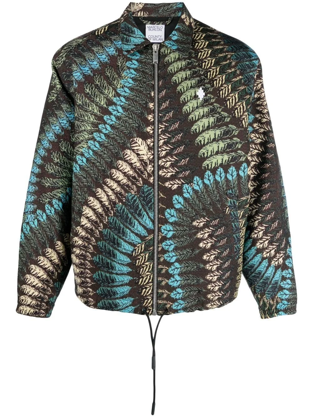 leaf-jacquard bomber jacket brown/green patterned jacquard embroidered logo at the chest spread collar front zip fastening long sleeves straight hem Made in Italy Composition Outer: Polyester 60%, Cotton 40% Lining: Polyester 65%, Cotton 35% SIZE & FIT Model measurements Height 6 ft 2 in(1.87 m) Bust/Chest 36.22 in(92 cm) Hips 37 in(94 cm) Waist 27.95 in(71 cm) FittingInformation This piece fits true to size. We recommend you get your regular size Cut for a relaxed fit Made with a mid-weight non-stretch fabric Washing instructions Machine Wash