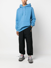 logo-patch track pants Highlights - Black - Logo patch to the front - Elasticated drawstring waistband - Two side slit pockets - Elasticated ankles Imported Composition Polyester 100%, Polyamide 100% SIZE & FIT Model measurements Height 6 ft 2 in(1.87 m) Bust/Chest 38.18 in(97 cm) Hips 36.61 in(93 cm) Waist 29.13 in(74 cm) FittingInformation Designed for a relaxed tapered leg, allowing a comfortable loose fit above the knee with a closer fit towards the calves The elasticated hem at the ankle allows for movement and a comfortable fit Made from a lightweight non-stretch fabric This piece fits true to size – take your usual size Washing instructions Machine Wash