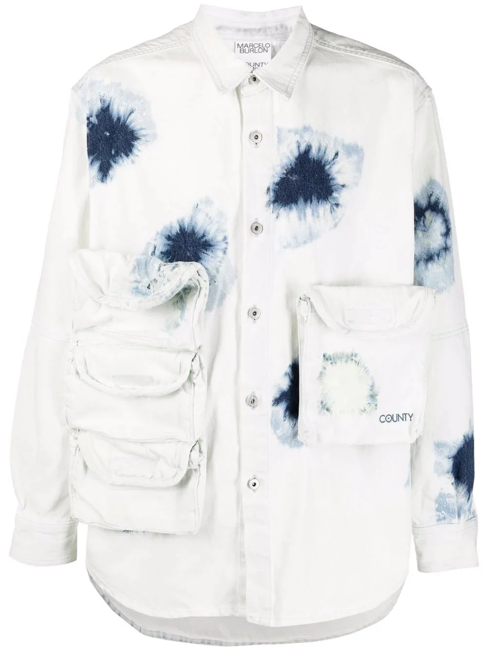 multi-pocket denim shirt Marcelo Burlon County of Milan is known as a contemporary, edgy and fashionable brand that is magnetizing the international scene. The sleek approach to streetwear is punctuated by an eye-catching tie-dye print and multiple flap pockets, that instantly elevate this denim shirt. Made in Italy Composition Cotton 100%, Polyester 100% SIZE & FIT Model measurements Height 6 ft 2 in(1.87 m) Bust/Chest 36.41 in(92.5 cm) Hips 37 in(94 cm) Waist 29.52 in(75 cm) FittingInformation This piece fits true to size. We recommend you get your regular size Cut for a loose fit Made with a mid-weight non-stretch fabric Washing instructions Machine Wash