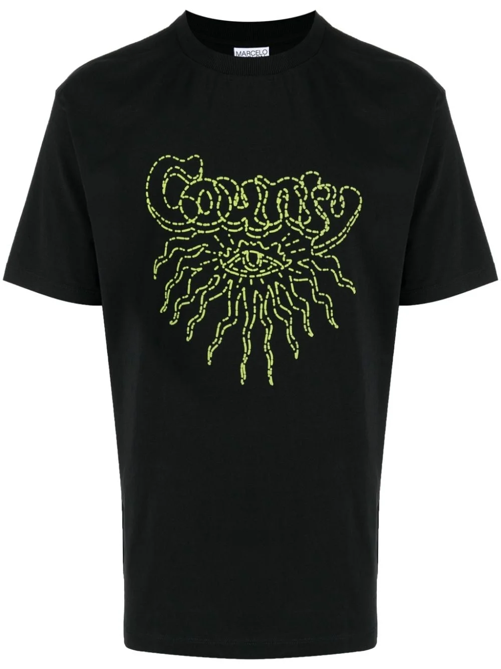 Stitch Eye cotton T-shirt Highlights - Black/lime green - Cotton blend - Soft jersey - Embroidered motif - Crew neck - Short sleeves - Straight hem Imported Composition Trims: Polyester 100%, Cotton 95%, Elastane 5% Body: Cotton 100% SIZE & FIT Model measurements Height 6 ft 2 in(1.87 m) Bust/Chest 34.25 in(87 cm) Hips 36.22 in(92 cm) Waist 29.52 in(75 cm) FittingInformation Designed to be unstructured, offering a loose fit throughout Made from a midweight non-stretch fabric, this piece offers minimal elasticity when worn This piece fits true to size – take your usual size