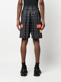 xKAPPA logo-patch shorts black/multicolour geometric print logo patch to the front elasticated drawstring waistband two side slit pockets rear welt pocket Made in Italy Composition Polyester 100% SIZE & FIT Model measurements Height 6 ft 1 in(1.85 m) Bust/Chest 31.88 in(81 cm) Hips 33.07 in(84 cm) Waist 26.77 in(68 cm) FittingInformation This piece fits true to size. We recommend you get your regular size Designed for a slim fit at the waist and loose over the leg Made with a mid-weight fabric Washing instructions Machine Wash