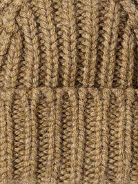 chunky-ribbed wool beanie hat Highlights - Beige - Curved peak - Turn-up brim Made in United Kingdom