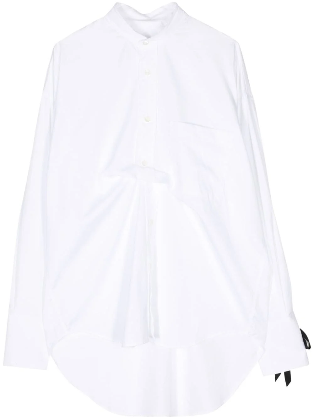 draped cotton shirt Highlights - White - Cotton - Band collar - Front button fastening - Long sleeves - Draped design - Curved hem Made in Italy Composition Cotton 100%