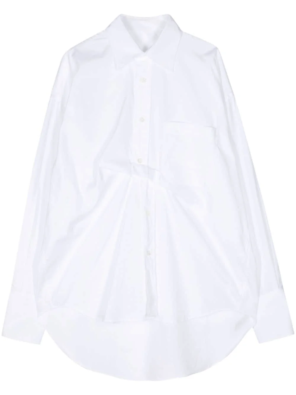 gathered cotton shirt Highlights - White - Cotton - Poplin texture - Gathered detailing - Straight-point collar - Front button fastening - Long sleeves - Buttoned cuffs - Chest patch pocket - Curved hem Made in Italy Composition Cotton 100%