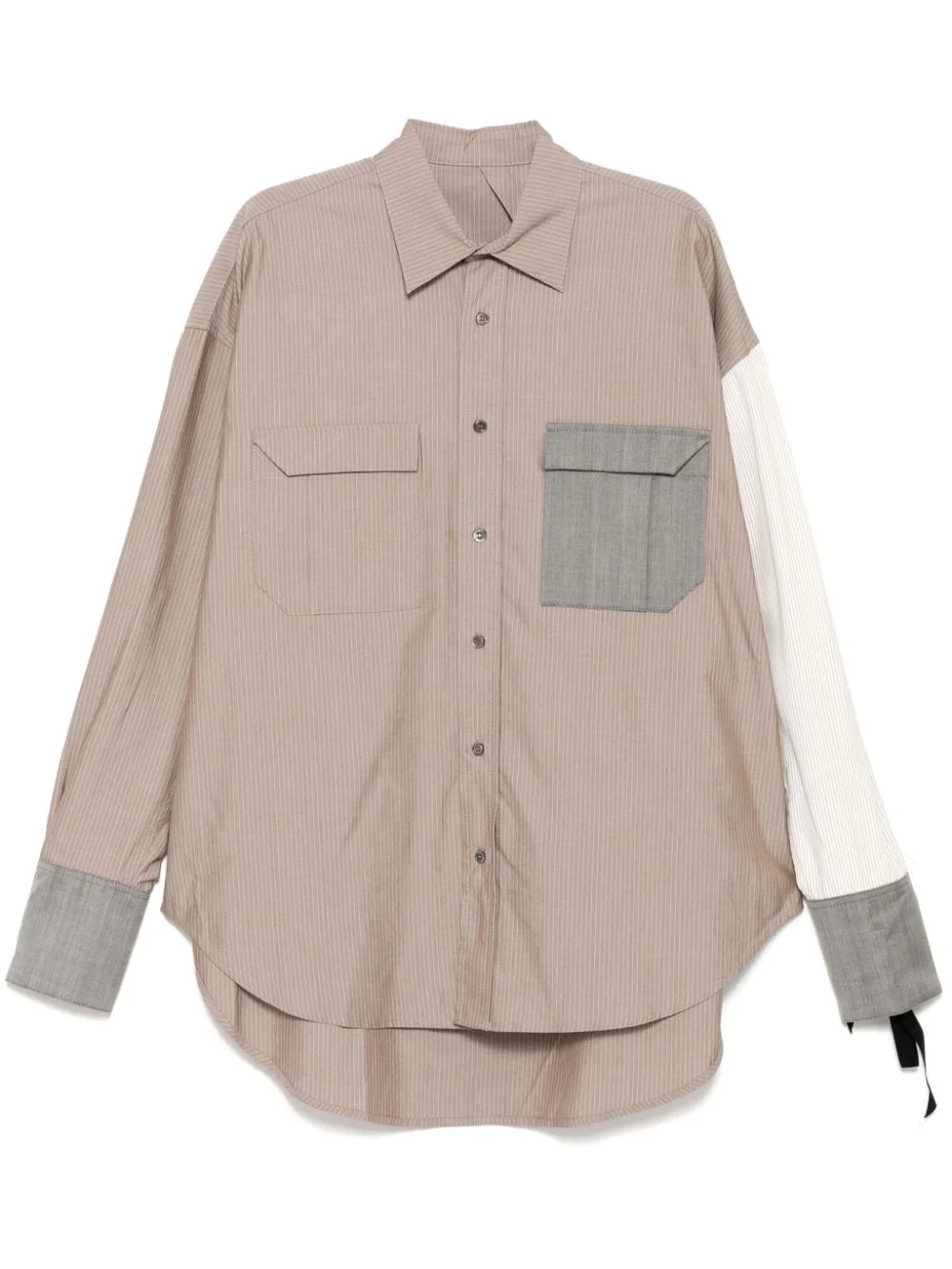 M.Y. Shirt 9 shirt Highlights - Light brown - Front button fastening - Pinstripe print - Two chest flap pockets - Curved hem Imported Composition Cotton 75%, Linen/Flax 18%, Wool 7%