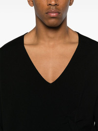 Origami sweater Highlights - Black - V-neck - Drop shoulder - Long sleeves - Ribbed trim Imported Composition Merino 100% SIZE & FIT Model measurements Height 5 ft 11 in(1.8 m) Bust/Chest 31.49 in(80 cm) Hips 35.82 in(91 cm) Waist 24.8 in(63 cm) FittingInformation This piece is unisex – if you usually select men's sizing expect a loose fit throughout; if you usually select women's sizes, expect an oversized fit Made with a midweight knit, this piece offers some stretch