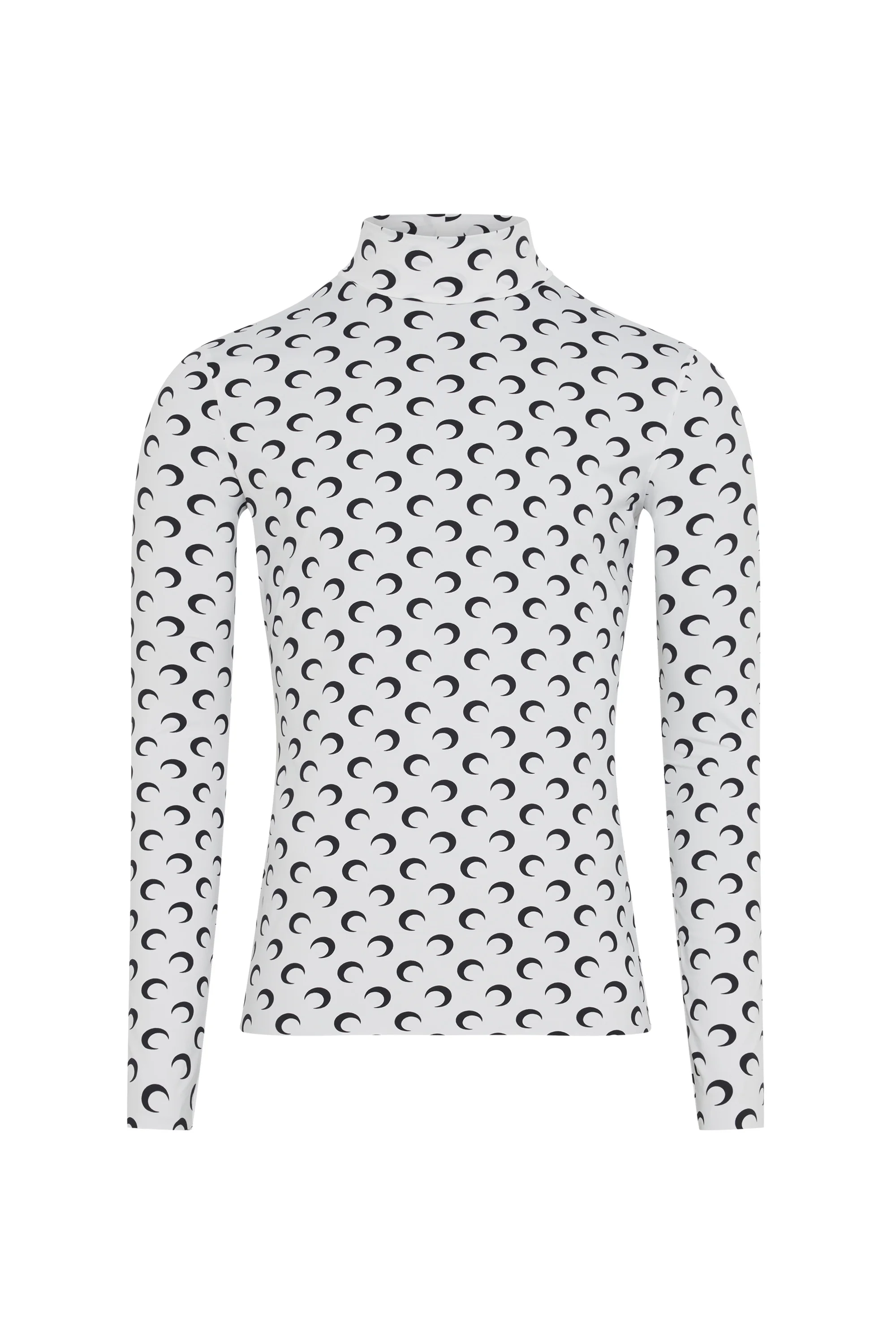 - High neck with self-fabric bias - Overedge stitching along seams and collar - Laser cut raw edge cuffs and hem Materials All Over Moon Jersey White The All Over Moon print is the banner of the House, it represents the house’s virtues and vision of Futurewear, ever present since the very beginning of the House for RADICAL CALL FOR LOVE. Indeed, what is perhaps the House’s most popular line holds its values at heart with a jersey composed entirely of recycled material. 88% Recycled Polyamide (GRS Certified), 12% Recycled Elastane