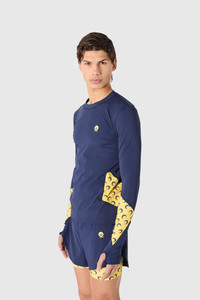 ATHLEISURE LONG SLEEVES TOP WITH CREWNECK Product Detail - Crewneck self fabric - Thumbhole at the cuffs - Marine Serre athleisure printed logo Composition and Traceability Product details page relating to environmental qualities or characteristics MTT100A_CJER0101_BL80_MIDNIGHT_BLUE Composition: 65% Polyamide, 35% Elastane Product Care: Machine wash 30°C Traceability: -Weaving/Dyeing/Manufacturing: Portugal