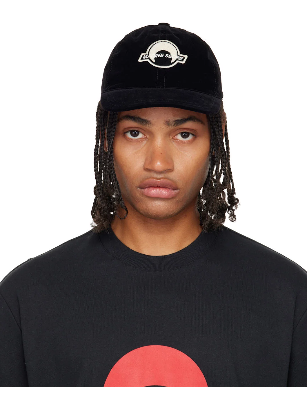 Velvet cap. · Boucle logo patch at face · Curved brim · Velcro fastening · Twill lining Supplier color: Black Body: 100% polyester. Lining: 100% cotton. Made in Bulgaria 252020M139003