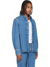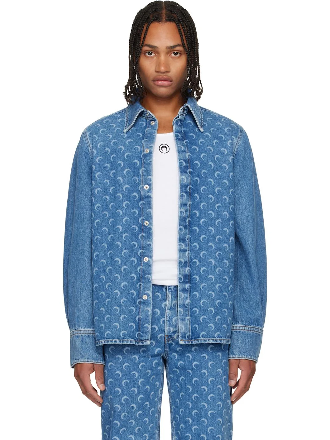 Non-stretch denim shirt. · Laser-printed logo pattern throughout · Spread collar · Concealed press-stud closure · Shirttail hem · Buttoned barrel cuffs · Logo patch at back collar · Contrast stitching in tan Supplier color: Light blue 100% cotton. Made in Turkey 252020M192003