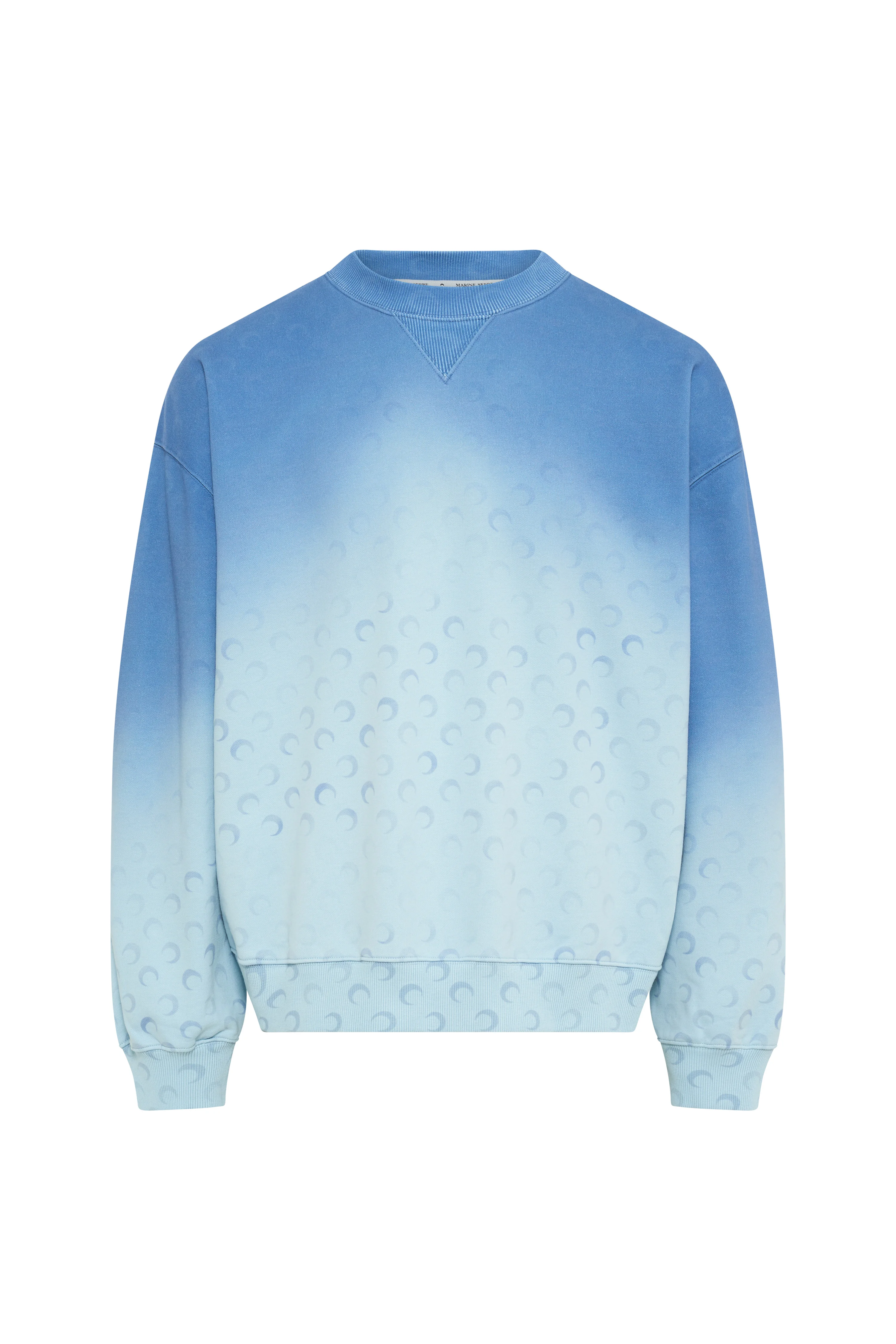 - FADED MOON artwork printed all over - Ribbed neckline and triangle - Ribbed cuffs and hem - Branded label woven under neck in back Materials Moon Faded Fleece All the cotton Marine Serre sources for Borderline is GOTS-certified — this world-leading textile processing standard chiming with the house’s own well-known commitment to protecting the planet. In terms of the silhouettes across these ranges, we wanted to offer a wide range of everyday styles that are directly inspired by the world of sportswear. Our Moon Logo Jersey lines come in a range of traditional colours (white, black and grey, but in most cases lilac too) spun out across t-shirts, tanks and dresses, as well as underwear. These garments are finished in the classic way familiar from sportwear garments, with our Moon Logo in raised embroidery just below the neckline. Some of the Recycled Cotton Jerseys (lilac and grey) feature our MS Sport logo — a print moon with Marine Serre embroidered above, and we have also expanded our palette with seasonal colours such as red and blue, bearing a Gradient All Over Moon print. 100% COTTON