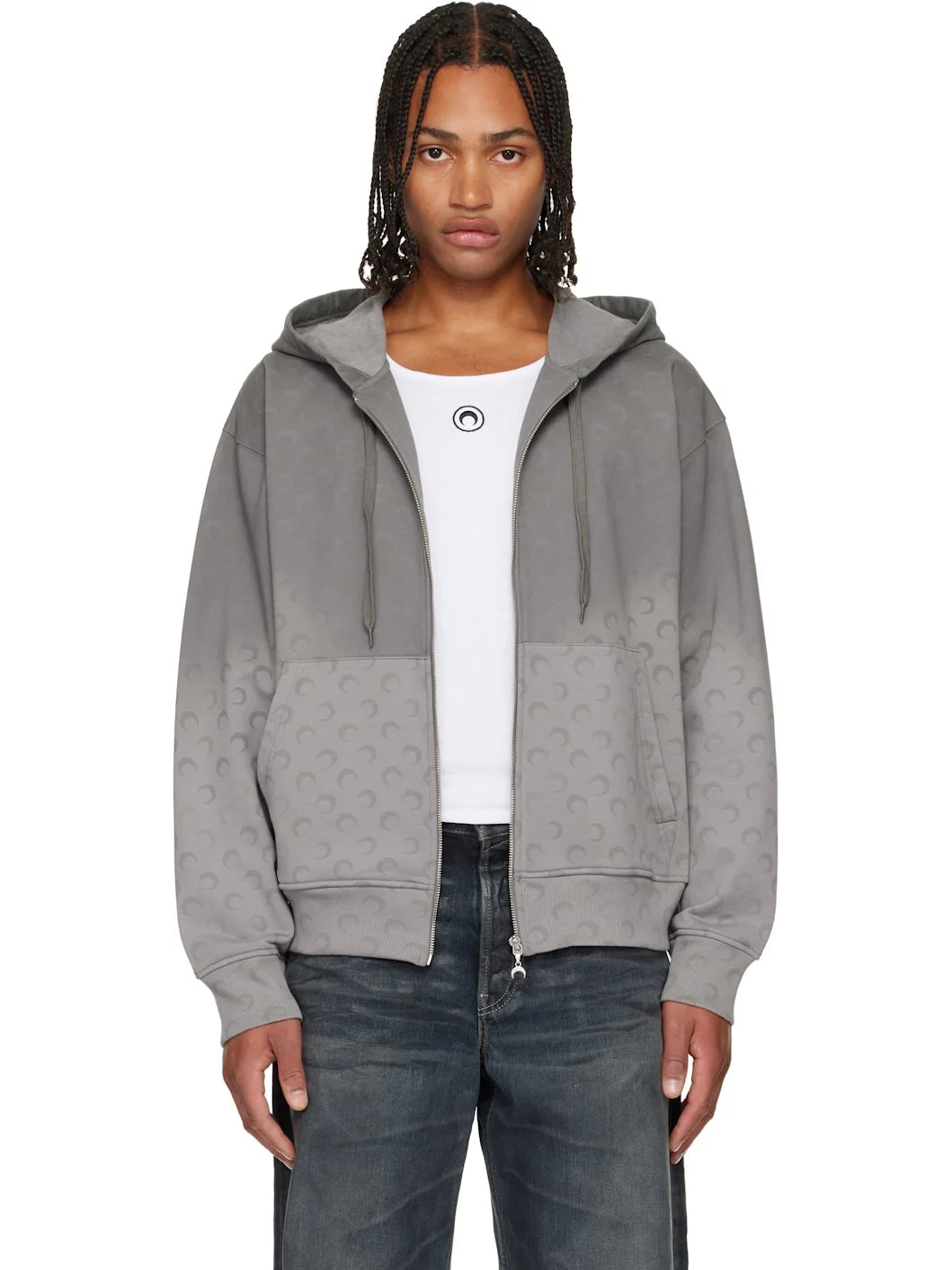 Stretch organic cotton- and recycled cotton-blend hoodie. · Fading and laser-printed logo pattern throughout · Drawstring at hood · Zip closure · Patch pockets at front · Rib-knit hem and cuffs · Dropped shoulders · Logo patch at back collar Supplier color: Dark grey Body: 60% cotton, 20% organic cotton, 20% recycled cotton. Trim: 98% cotton, 2% elastane. Made in Portugal 252020M202000