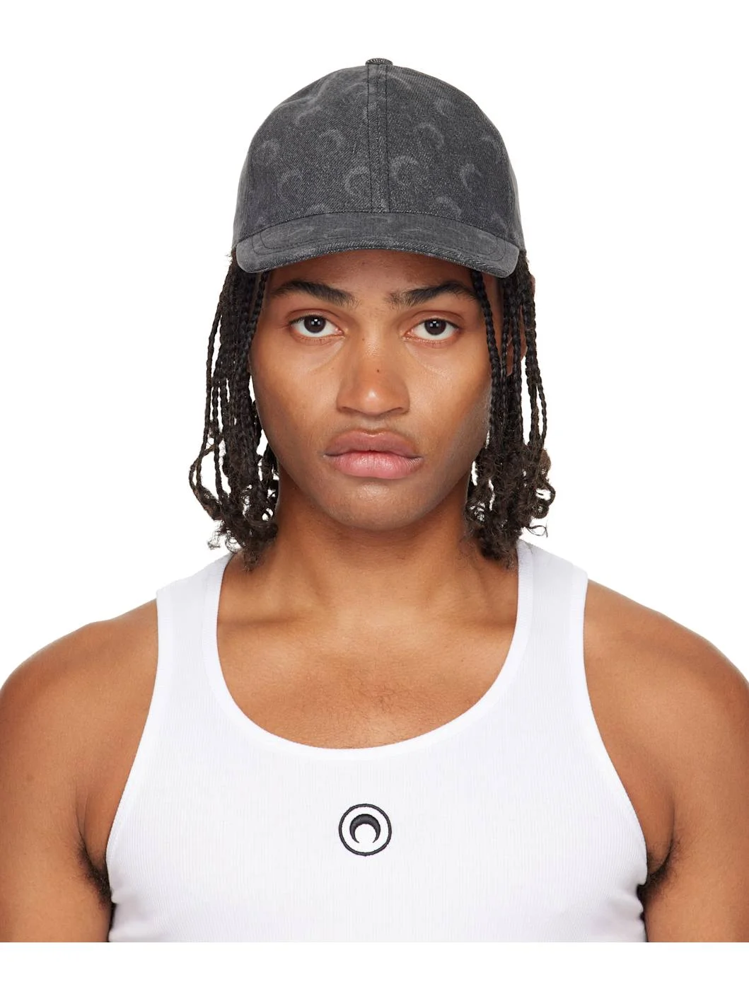 Denim cap. · Fading and printed logo pattern throughout · Curved brim · Velcro fastening · Twill lining Supplier color: Moon laser grey denim Body: 100% cotton. Lining: 100% cotton. Made in Bulgaria 252020M139002