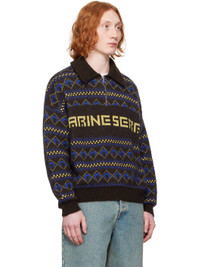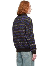 Knit mohair- and wool-blend sweater. Jacquard logo graphic pattern throughout. · Rib-knit spread collar, hem, and cuffs · Half-zip closure · Jacquard logo at front · Dropped shoulders Supplier color: Deep brown 43% mohair, 32% wool, 25% polyamide. Made in Romania 251020M204000